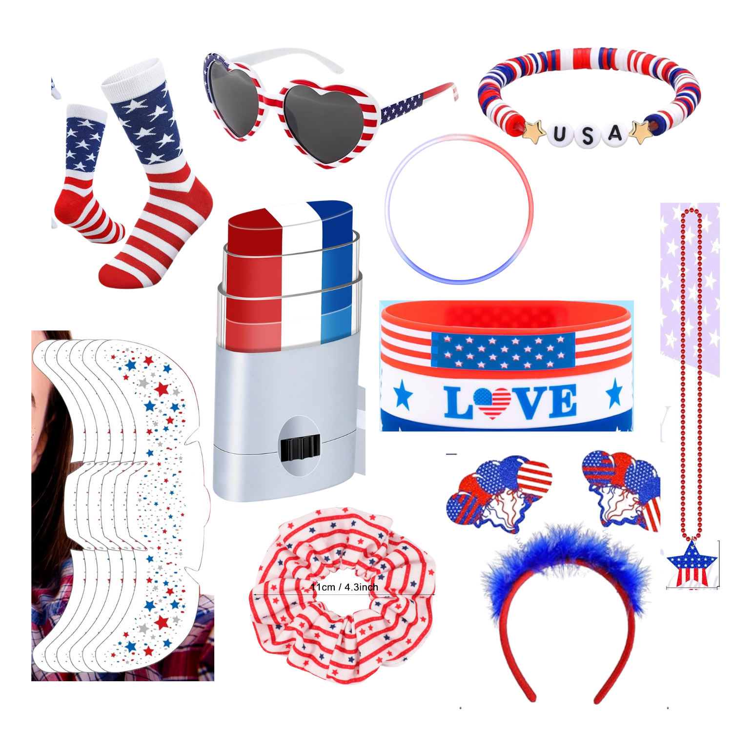Girls 4th of July Spirit Essentials BundleCelebrate Independence Day in style with this curated bundle of essentials. This collection includes 10 red, white, and blue accessories.